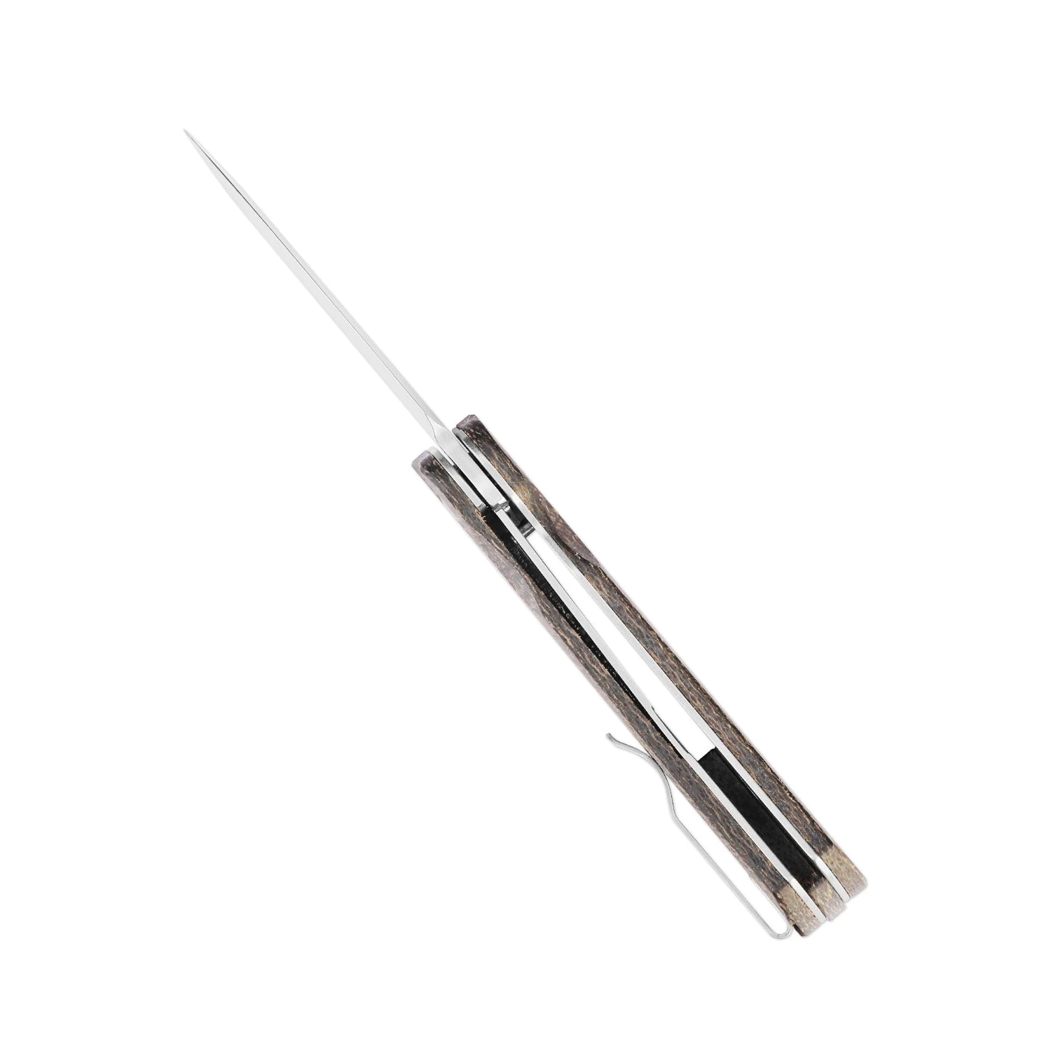 The Agressor features a Micarta handle, deep carry pocket clip and Drop Point blade.