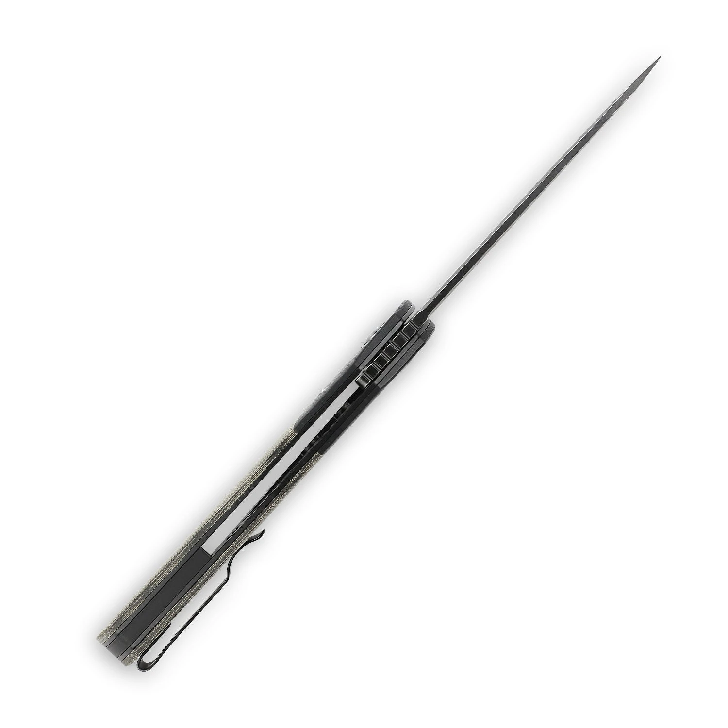 The In-Yan is one of Kizer’s largest pocket knives. Its overall length reaches 9-inches and definitely has a solid weight to it that is not overbearing or too heavy. Along with the powerful blade is the non-protruding flipper tab that comes off the handle and lines up with the edge so it doesn’t snag or poke. The deep carry pocket clip lies on the G-10 handle and is held tightly to prevent jingling around in your pocket. The liner lock is accented with jimping for easy access and effortless action.