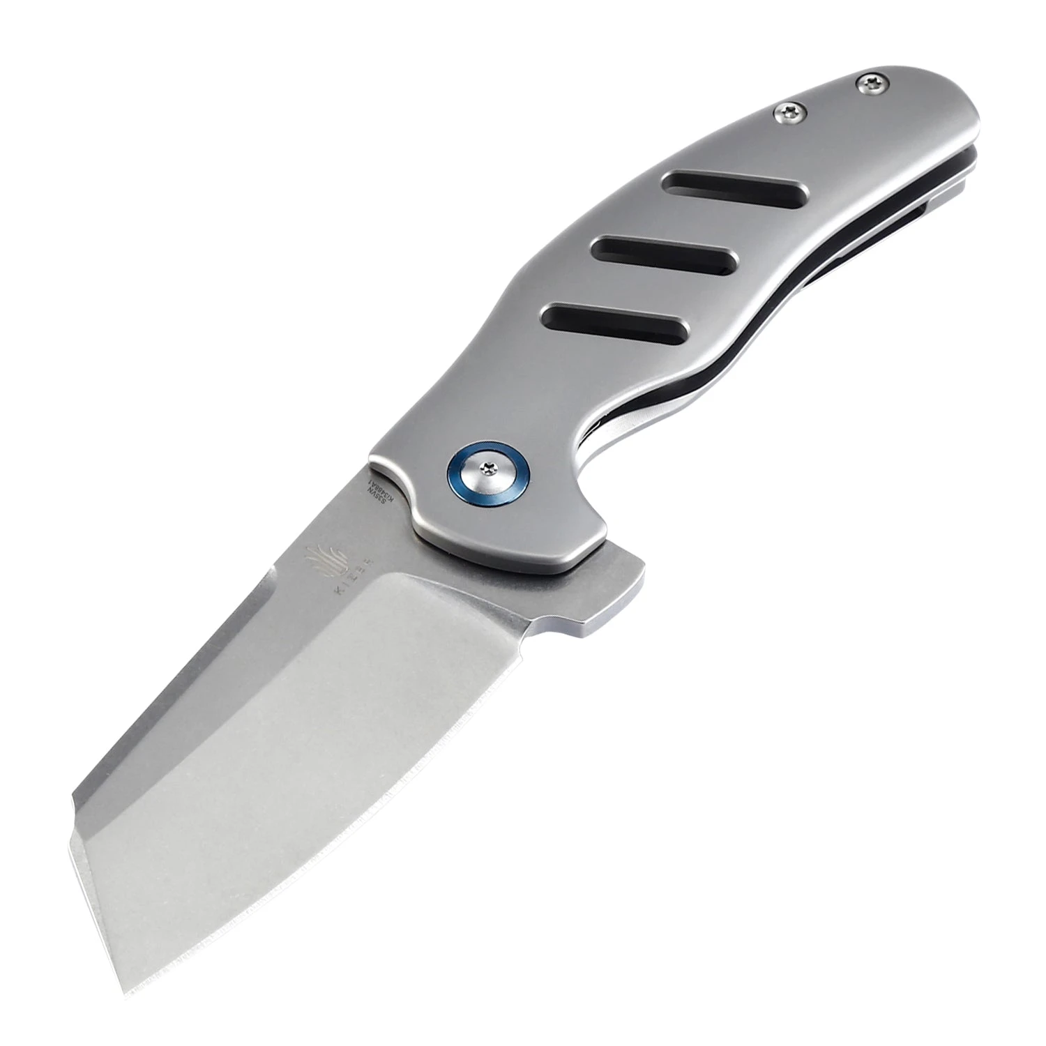 This Kizer Mini Sheepdog knife offers a more compact version of the cleaver design from Chris Conaway of Sheepdog Knives. Premium CPM-S35VN blade steel provides excellent wear resistance and edge retention. The blade deploys effortlessly on a smooth ball bearing pivot, and locks up solid. A titanium handle offers top-notch durability and a lightweight frame. It is a great companion for any hiker, landscaper, backpacker, hunter, wilderness guide, electrician or anyone in need of a reliable everyday carry.