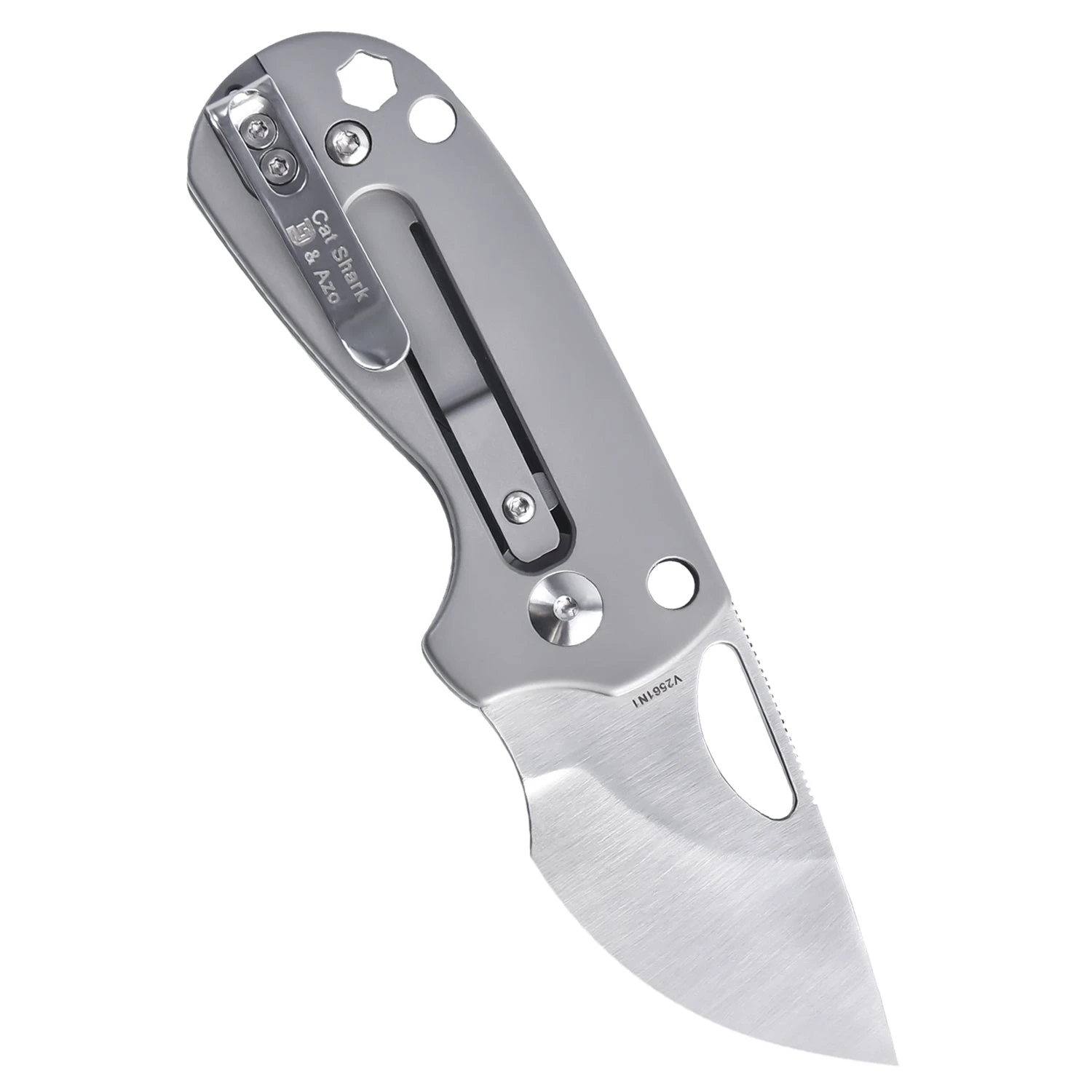 The design was inspired by a very lovely animal: cat shark. This is a lightweight knife with N690 steel blade with good anti-rust performance and beautiful and comfortable G10/Titanium handle. It also includes the design of pry bar and screwdriver.