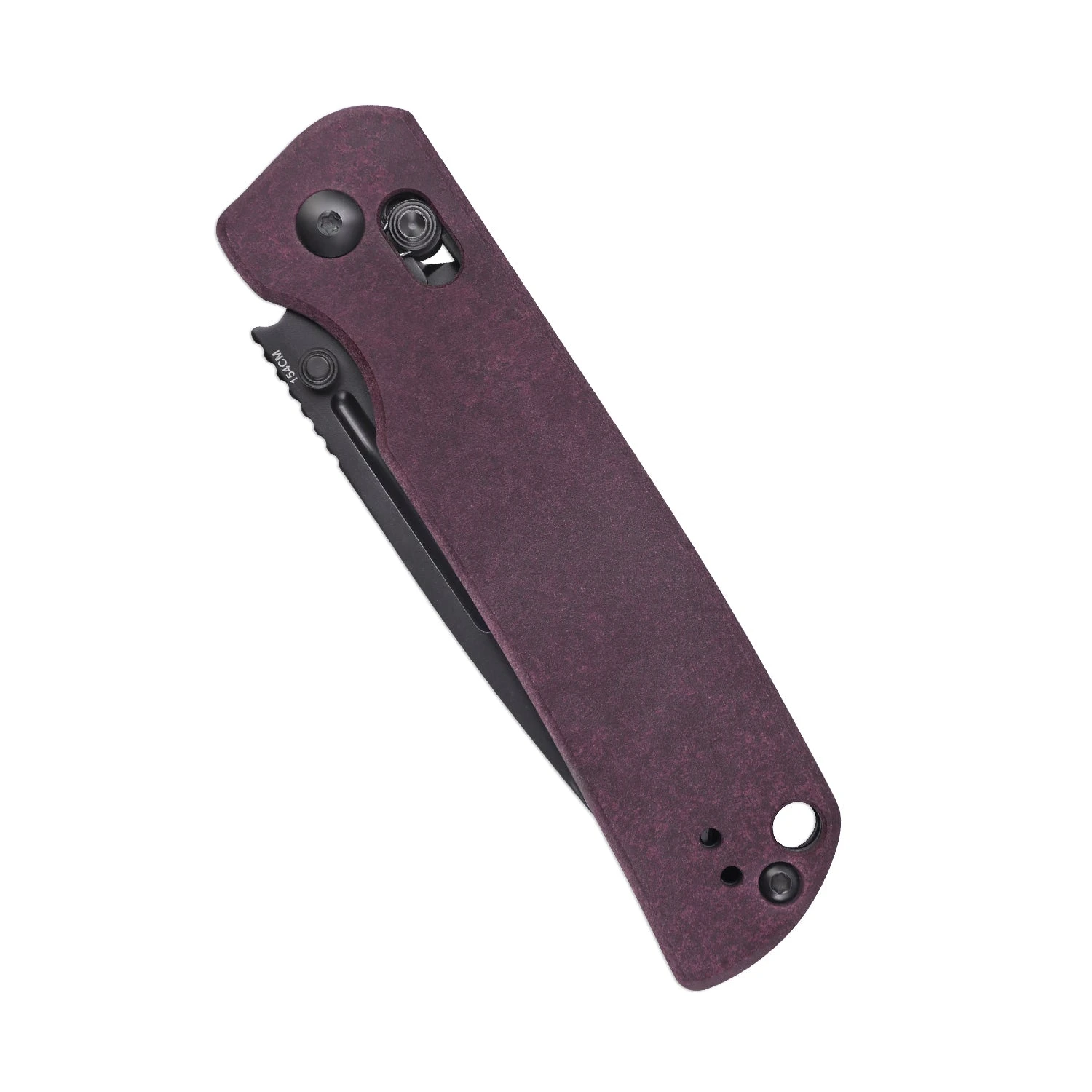 The Model is a new design by Dirk Pinkerton. It adopts the thumb stud openning method, the opening operation is incredibly smooth and the clutch lock is quicker and easier to use. The red Richlite is the perfect material for the handle. It looks great and perfect with a lovely texture.