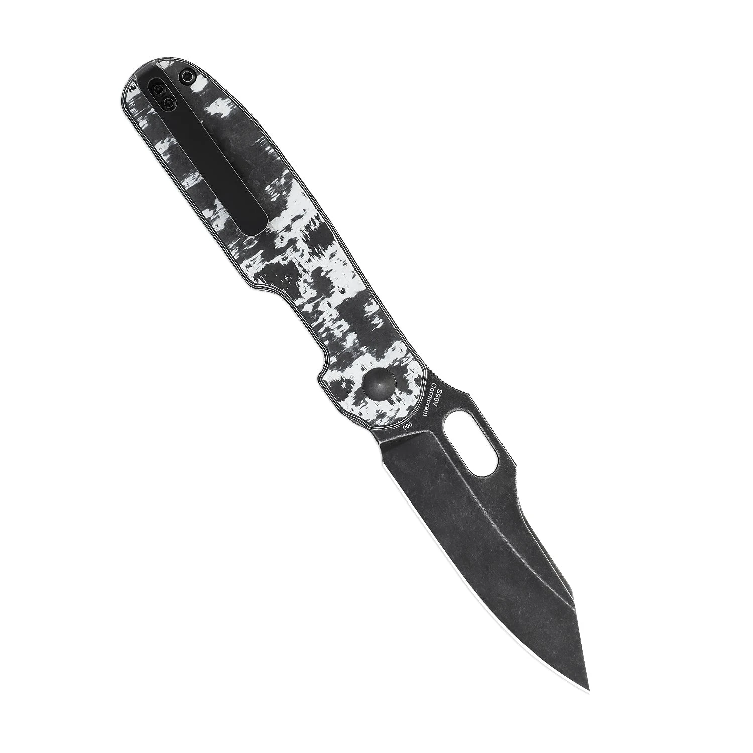 Kizer Cormorant S90V Blade Button Lock Knife Fatcarbon Handle Ki4562A7 (3.17”Black Stonewash)