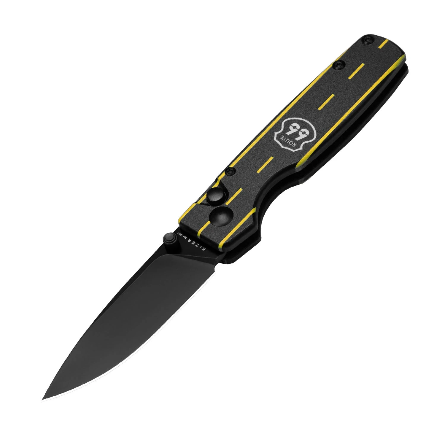 The “Coast to Coast” is printed on the back of the knife, which represents that the driver can take Route 66 from the east/west bank (driving all the way) to the west/east coast, and the consistent pursuit of American freedom.