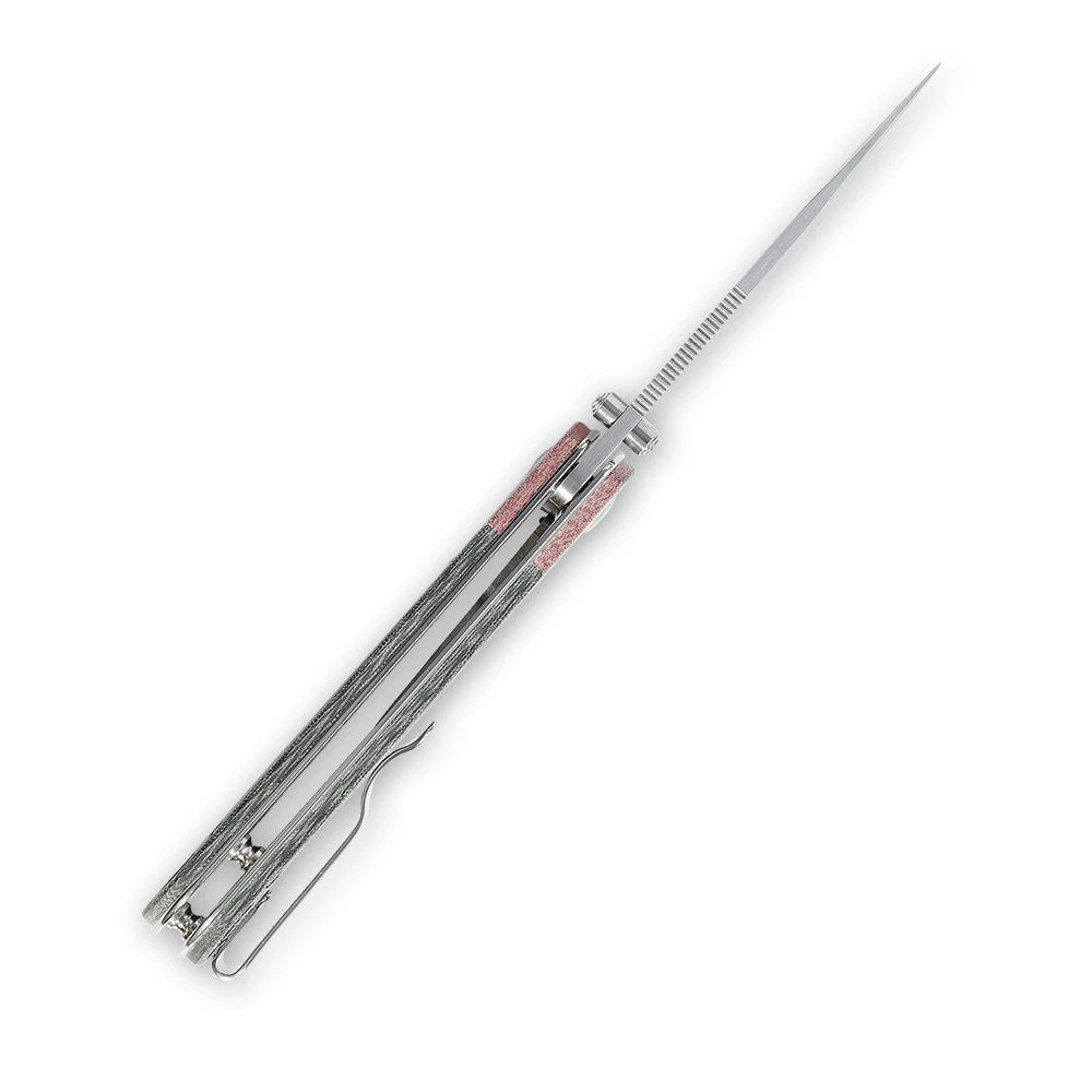 Designed by Azo , PPY is a elegant pocket knife. The red Micarta bolster gives a nice contrast to the grey micarta handle scales while the modified Spear point 154 CM blade could be your great helper for daily tasks! If you are looking for the perfect size EDC knife, this knife is a good choice.
