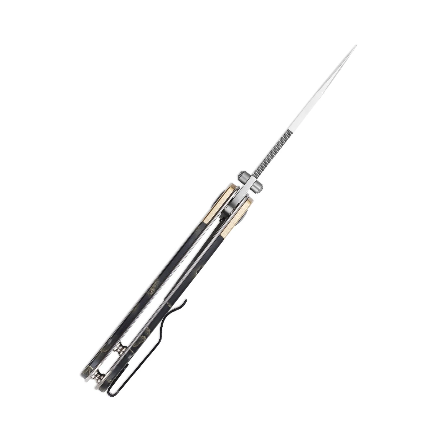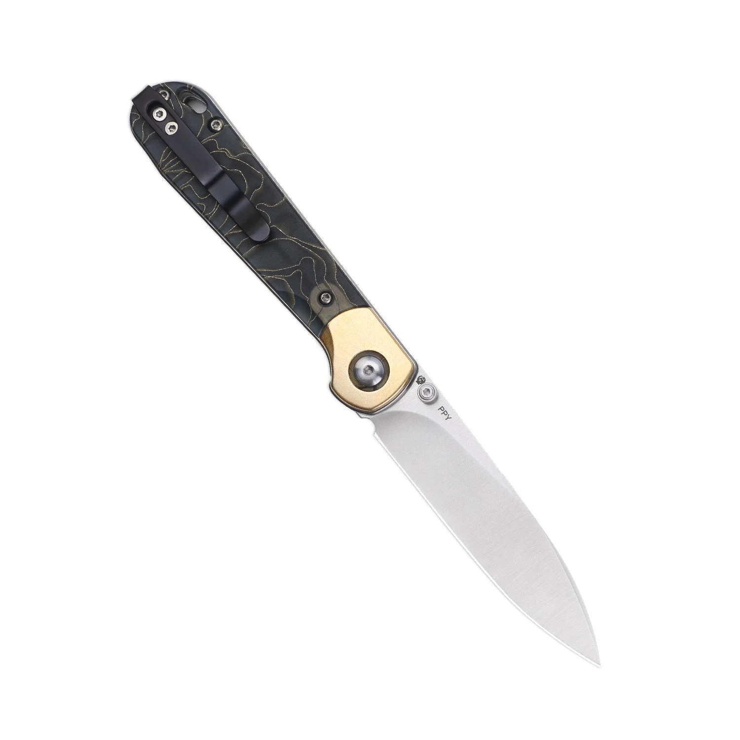 Designed by Azo , PPY is a elegant pocket knife. The handle is made of Brass and Raffir, which gives a nice contrast to the handle scales. While the modified Spear point S35VN blade could be your great helper for daily tasks! If you are looking for the perfect size EDC knife, this knife is a good choice. Super smooth deployment, great lockup, and just falls gracefully when one handed closing.