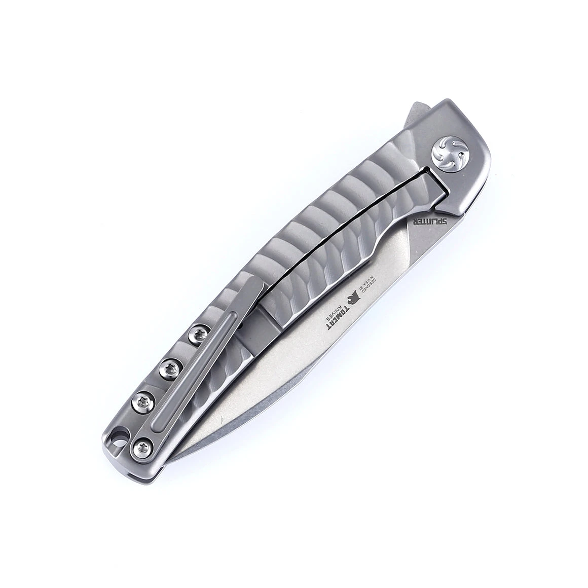 The Splinter is a collaboration with Kizer and Tomcat Knives. This knife features a contoured and textured titanium handle with an S35VN steel blade. The action is smooth with the ball bearings. You can open it via the flipper. A titanium frame lock provides a reliable lock up of the blade with minimal blade play. There is a natural stonewash finish on the blade and the handle is equipped with a custom pivot, lanyard hole and a reversible titanium pocket clip.